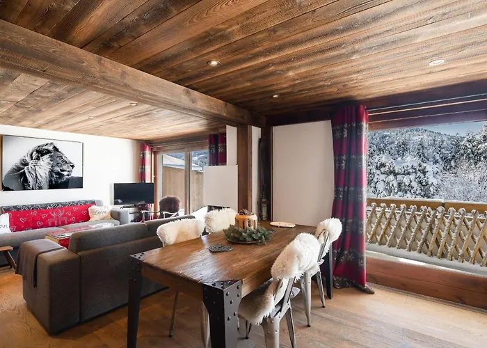 The spacious 2-bedroom Flat Simba - Megeve - Mont D'Arbois Apartment is located nearly a 25-minute walk from Col Ski Lift and offers Wi-Fi for either business or leisure. Guests can enhance their relaxation experience at the apartment with access to a tennis court and a golf course, providing the epitome of luxury.
